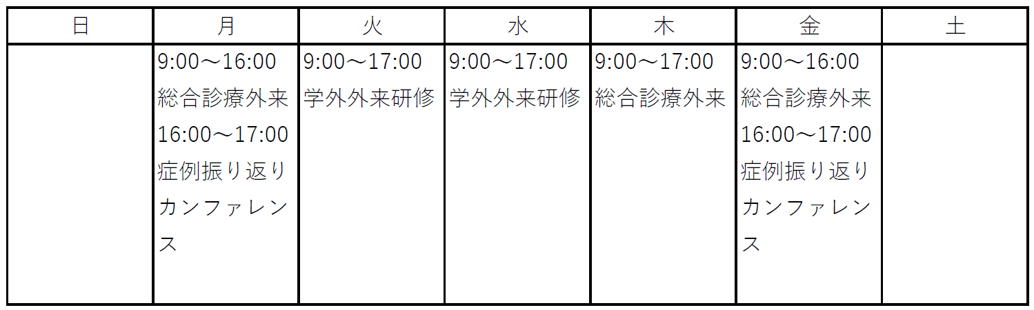 病棟・外来での一般的な症候、疾患に対して適切な鑑別、対応を行えるようになる。患者さんの多様な背景に対して省察し、より良い生活を実現できるようなマネジメントを行えるようになる。